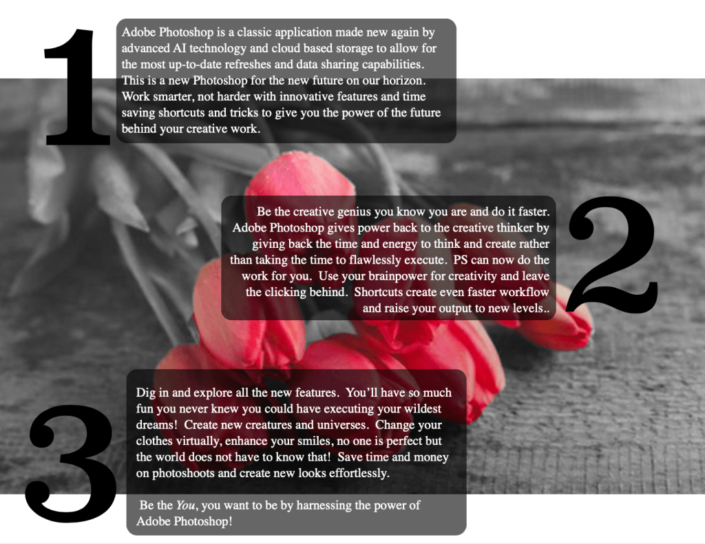 Let me help you by create stunning visual reports for any aspect of your business. I created a tribute to photoshop and illustrator, mimicking a high fashion magazine to draw in my audience and showcase my abilities and the power that creative apps have if you know how to use them!