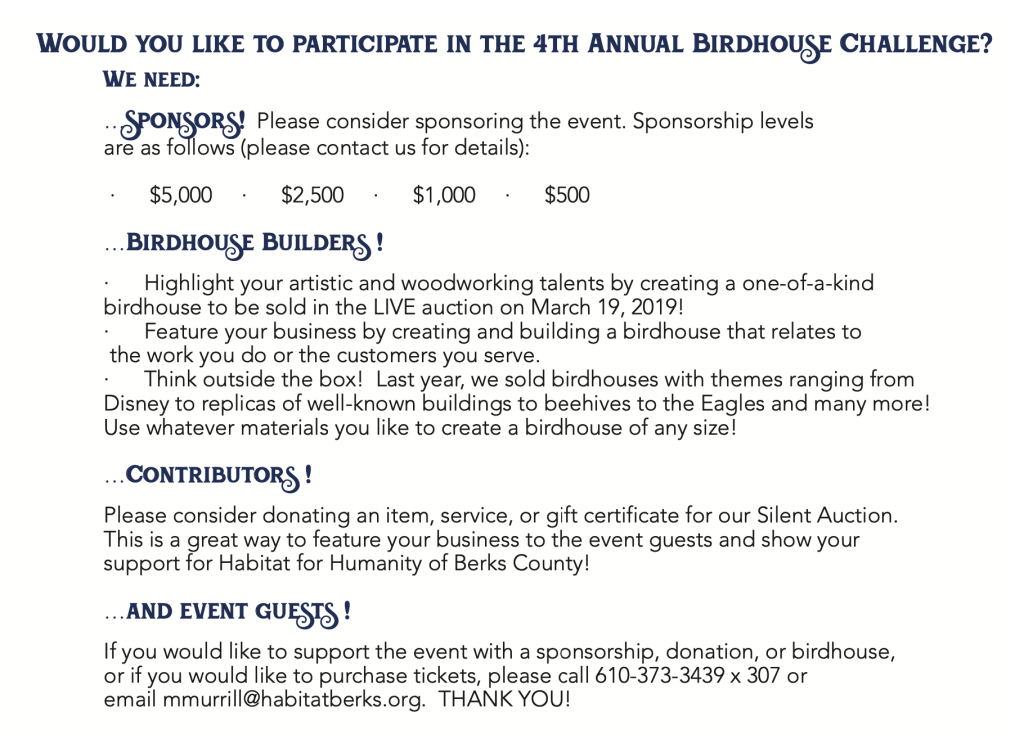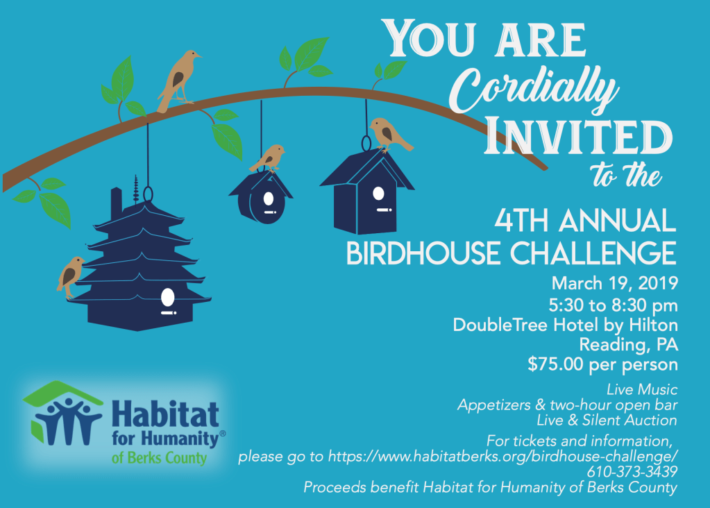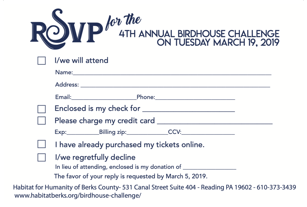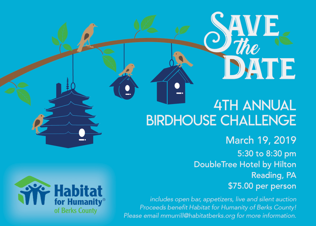 Birdhouse Challenge- Habitat for Humanity. Invitation, Save the Date, RSVP and Sponsorship Card.
